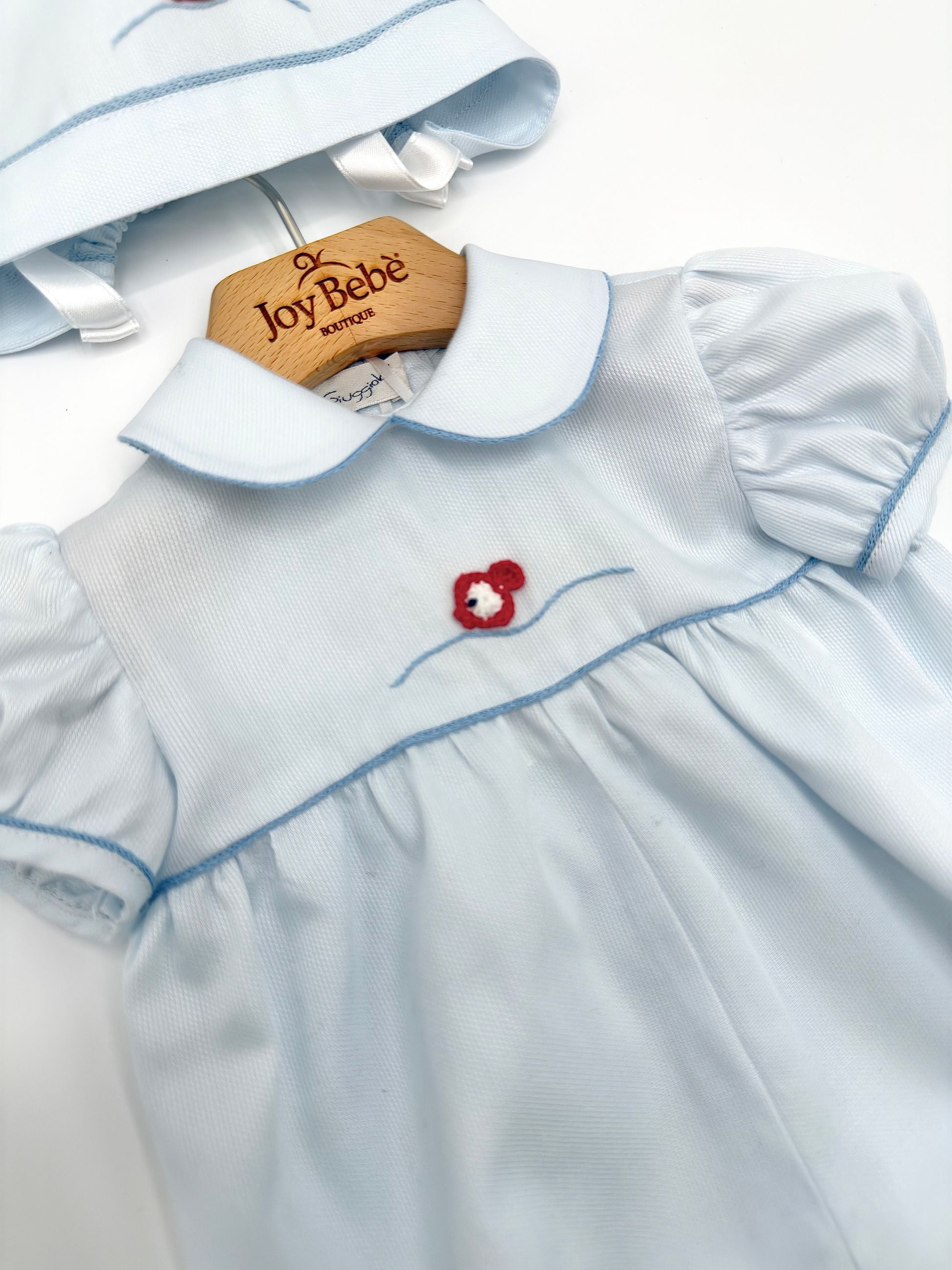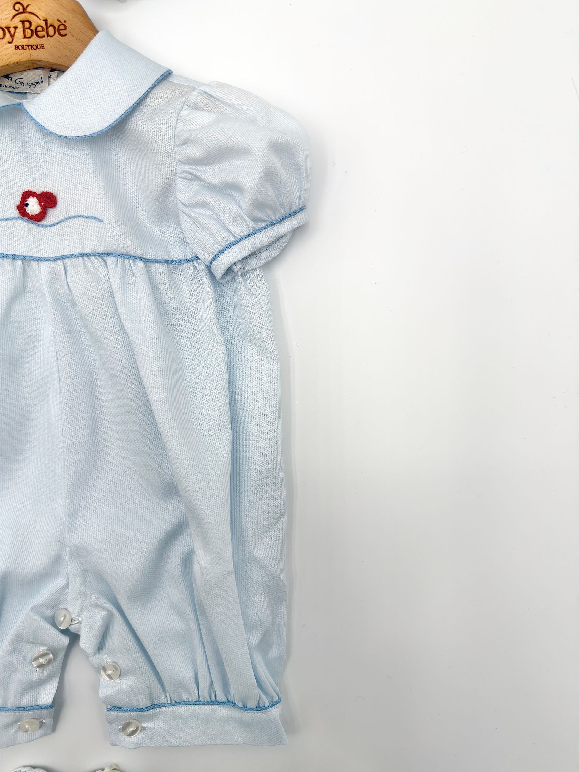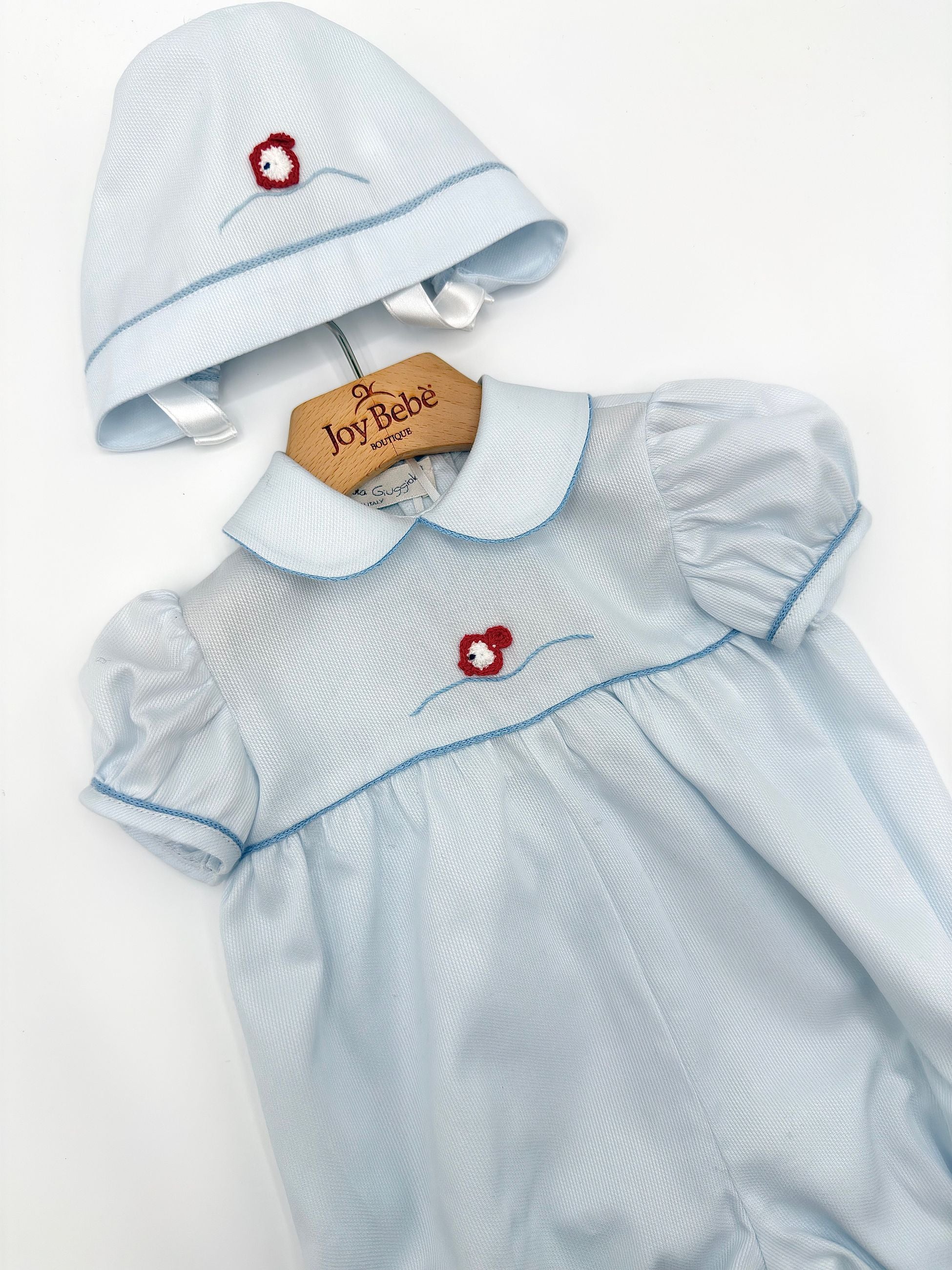 PICCOLA GIUGGIOLA nasce dalla passione per l’artigianato tradizionale e dalla cura per i dettagli che da sempre contraddistinguono il Made in Italy. Specializzata nella creazione di capi e accessori per il neonato, realizza ogni prodotto interamente a mano, combinando abilità sartoriale e un’estetica raffinata.