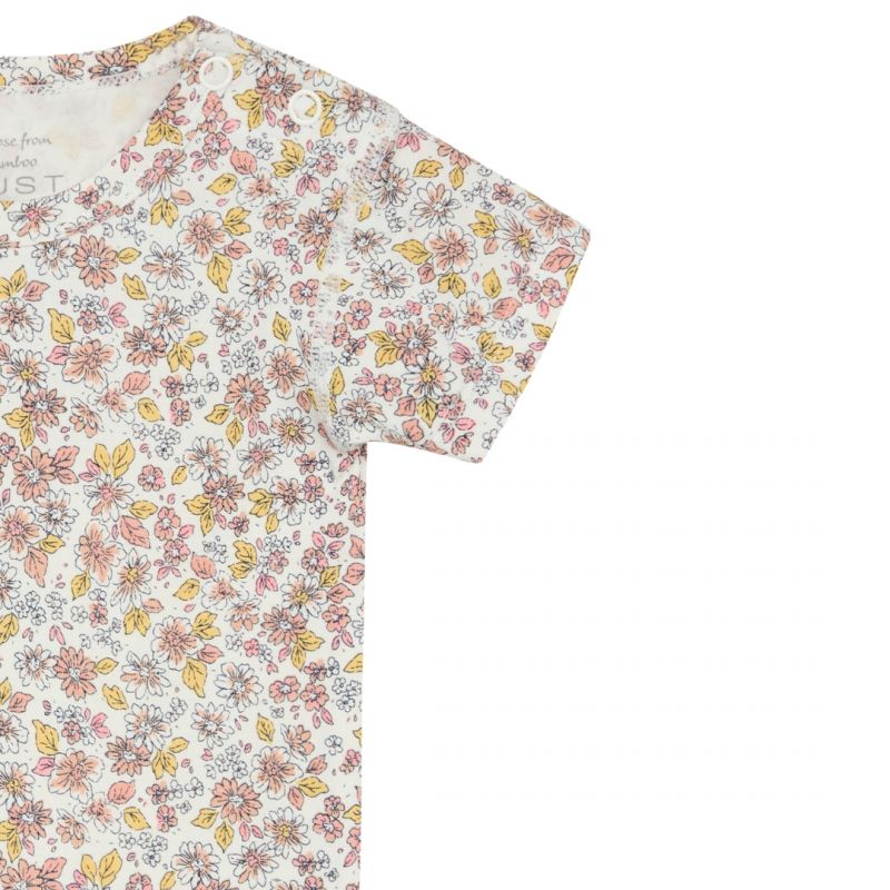 Body a maniche corte in morbida e elastica viscosa di bamboo . Il capo si chiude con bottoni sulla spalla sinistra e tra le gambe. Certificato Oeko-Tex 100®.