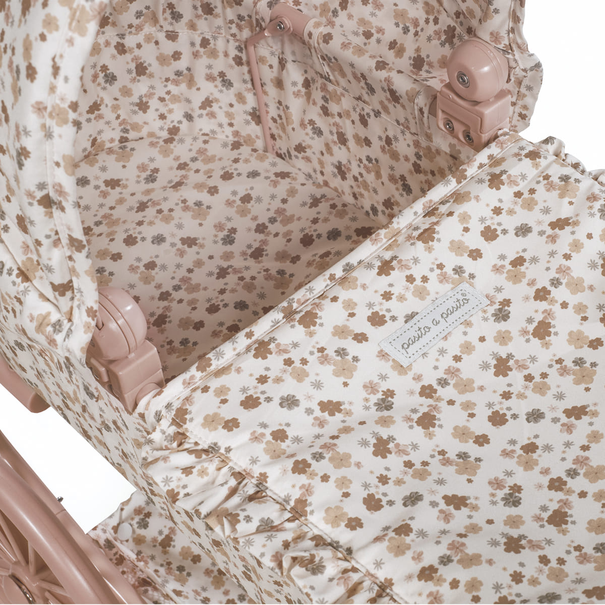 Classico passeggino per bambole Pasito a Pasito – Passeggiate da sogno per le tue bambole! Immergiti nell’eleganza e nella tradizione con il magnifico passeggino classico per bambole dell’esclusiva collezione Nara di Pasito a Pasito. Questo incantevole passeggino, con il suo design vintage e i dettagli raffinati, è il giocattolo perfetto per bambini e bambine dai 3 ai 4 anni che desiderano portare a spasso le loro bambole con un tocco di classe. Design classico e romantico: ispirato ai passeggini di una volta, presenta una struttura robusta con grandi ruote in stile tradizionale e una capottina spaziosa, che evocano nostalgia e bellezza senza tempo. Emblematica stampa “Nara”: decorato con la delicata e dolce stampa di cerbiatti della collezione Nara di Pasito a Pasito, nei toni del beige, che conferisce un tocco di raffinatezza e tenerezza. Dettagli premium: finiture curate nei minimi dettagli, con volant e una confezione impeccabile che sottolineano la qualità e la cura del marchio Pasito a Pasito. Altezza ideale del manubrio: con un manubrio alto 68 cm, questo passeggino è perfettamente adatto all’altezza dei bambini dai 3 ai 4 anni, garantendo una presa comoda e un’esperienza di gioco naturale. Ampio spazio per le bambole: le sue generose dimensioni di 74x41x68h cm lo rendono ideale per bambole da 30 a 42 cm, consentendo ai “bambini” di riposare e viaggiare in totale comfort. Include borsa da passeggio abbinata: il passeggino è accompagnato da un’adorabile borsa da passeggio con lo stesso motivo Nara, perfetta per i bambini per trasportare gli accessori delle loro bambole o i loro piccoli tesori. Struttura robusta e stabile: progettato per resistere al gioco quotidiano, garantendo stabilità e sicurezza ad ogni passeggiata. Conforme alla normativa europea EN-71: come tutti i giocattoli Pasito a Pasito, questo passeggino è stato fabbricato secondo i più elevati standard di sicurezza e ha superato i severi test della normativa europea EN-71, garanten